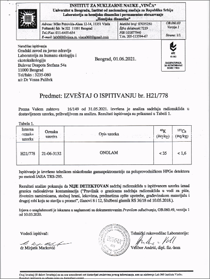 - Onolam preparat se koristi samostalno ili u kombinaciji sa hemoterapijom i zračenjem. Može se piti i preventivno.