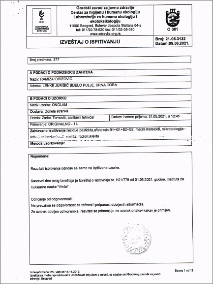 Tinktura "Onolam preparata" koja se sastoji od 30 vrsta biljaka, sa dodatkom meda i propolisa.